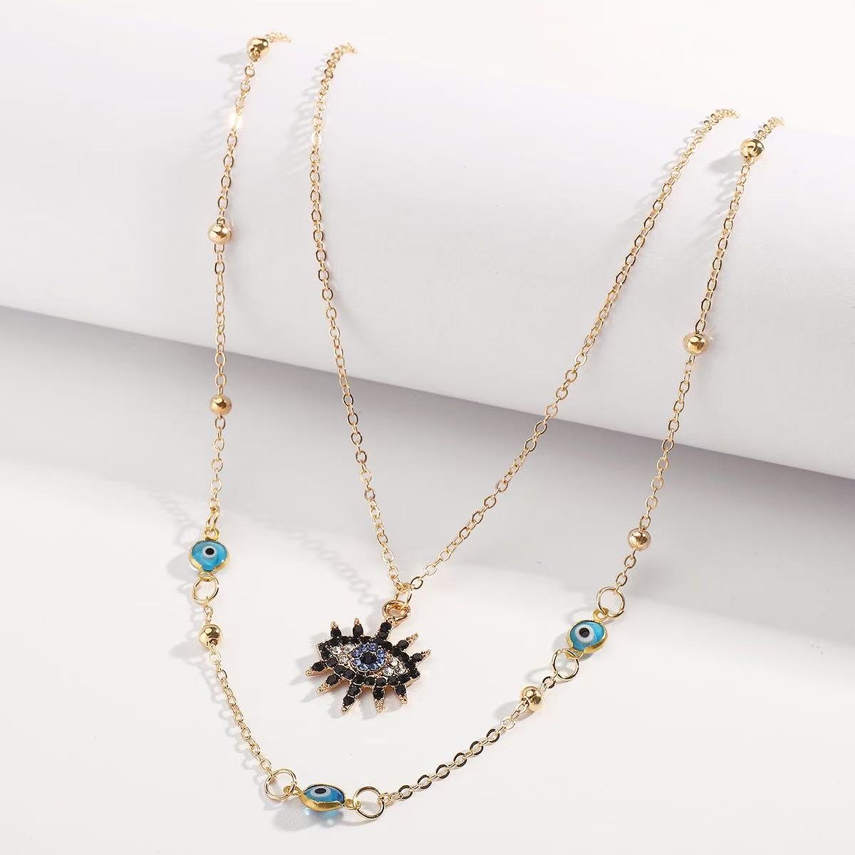 Gold- Evil Eye Pendant Protection Lucky Amulet Necklace